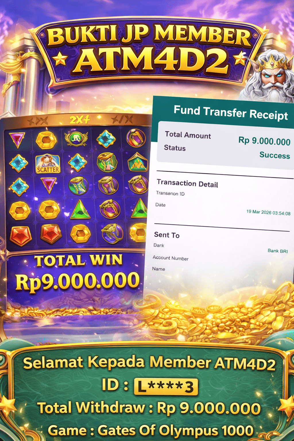 ATM4D2 dikenal sebagai situs terpercaya yang selalu menghadirkan pengalaman bermain slot online yang aman, fair, dan berlisensi resmi. Di sini, kami tidak hanya sekadar memberikan janji, tapi bukti nyata berupa slip kemenangan yang dapat Anda lihat secara langsung.