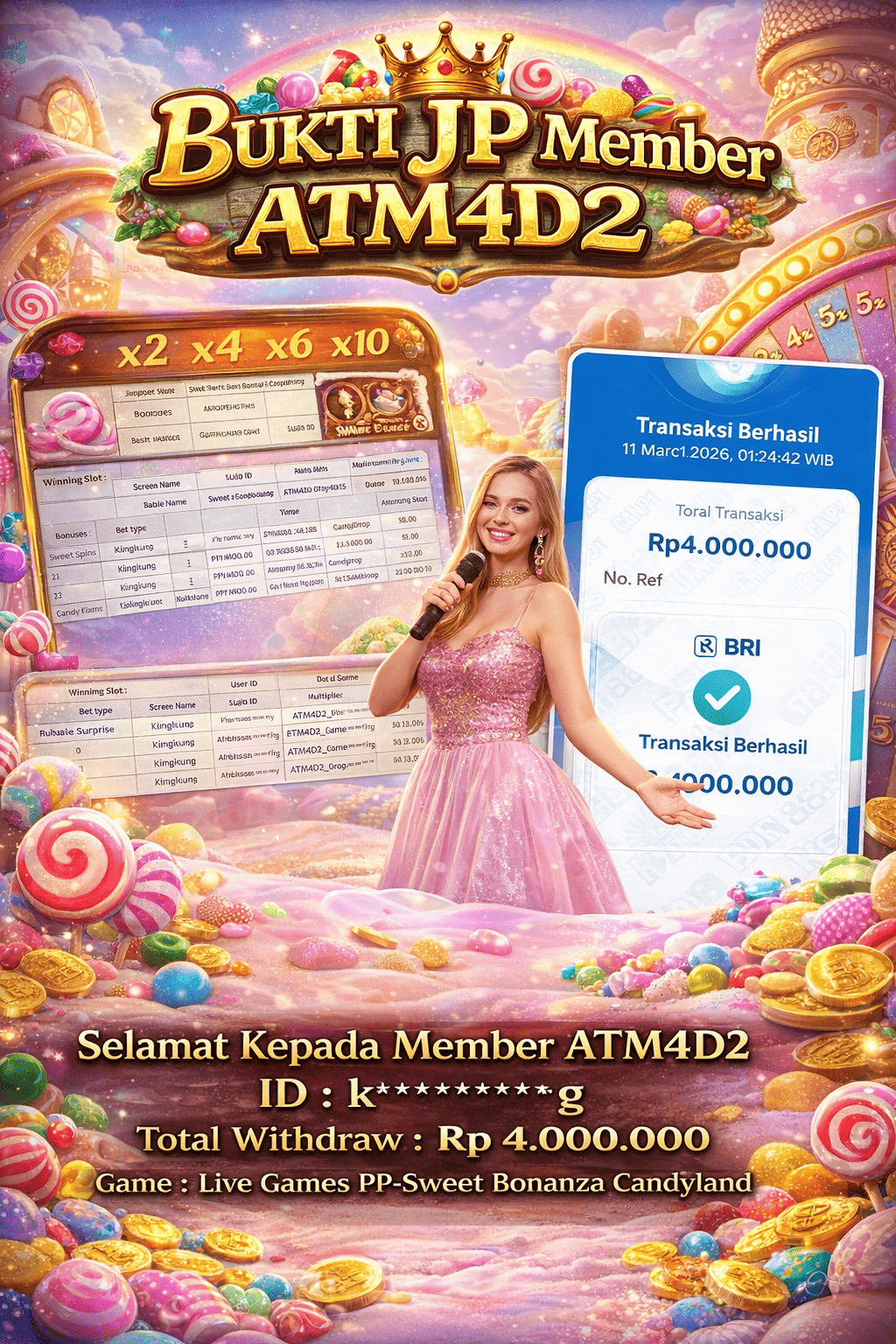 Setiap hari, member ATM4D2 berhasil meraih jackpot besar dari berbagai provider slot ternama yang kami sediakan, seperti Pragmatic Play, Habanero, PG Soft, dan masih banyak lagi. Kami secara rutin menampilkan bukti screenshot atau rekapan kemenangan yang berhasil diraih, mulai dari kemenangan ratusan ribu hingga puluhan juta rupiah. Semua slip kemenangan ini kami hadirkan untuk membuktikan bahwa di ATM4D2, peluang menang itu nyata.