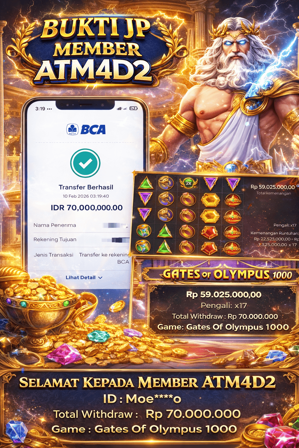 ATM4D2 dikenal sebagai situs terpercaya yang selalu menghadirkan pengalaman bermain slot online yang aman, fair, dan berlisensi resmi. Di sini, kami tidak hanya sekadar memberikan janji, tapi bukti nyata berupa slip kemenangan yang dapat Anda lihat secara langsung.