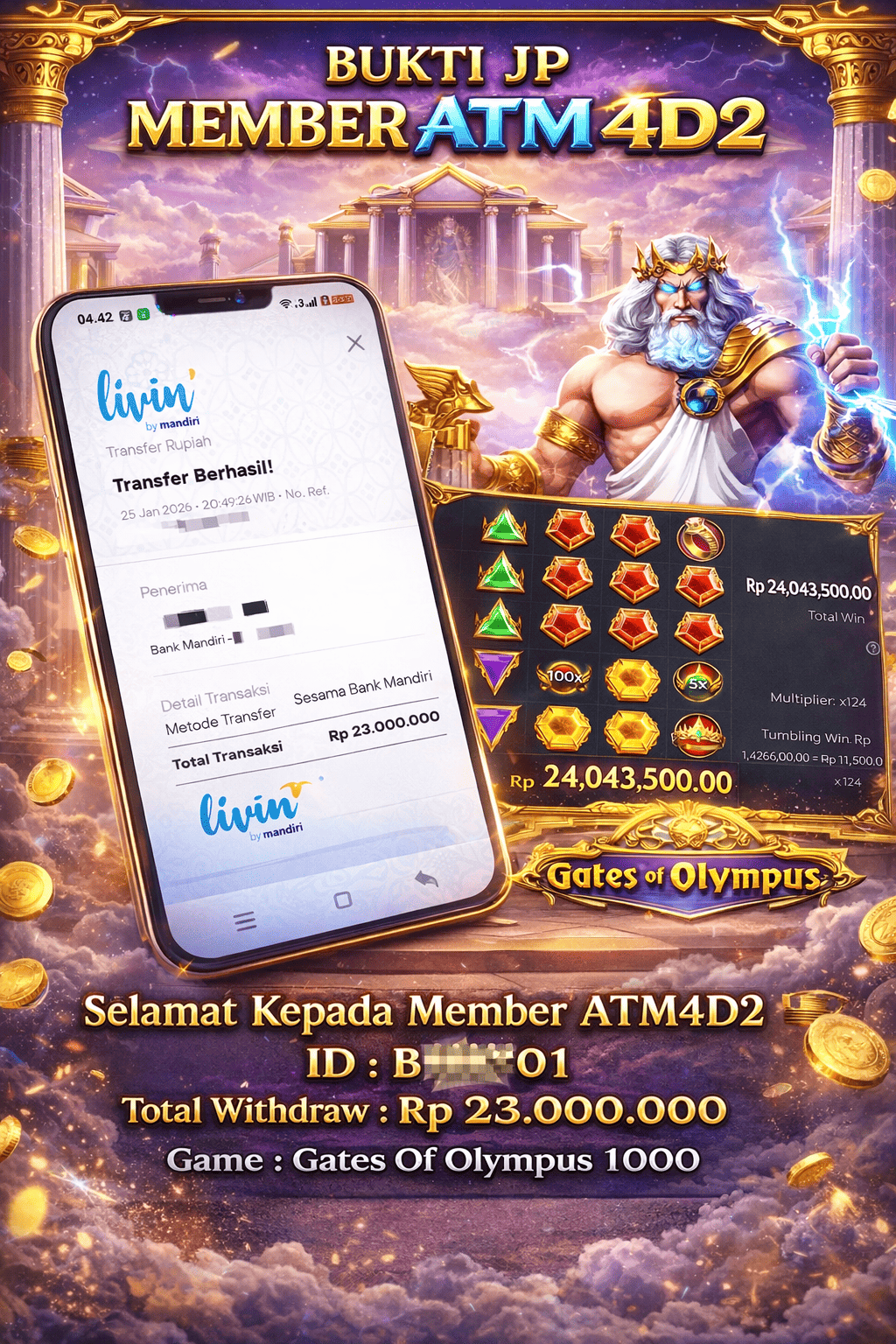 ATM4D2 dikenal sebagai situs terpercaya yang selalu menghadirkan pengalaman bermain slot online yang aman, fair, dan berlisensi resmi. Di sini, kami tidak hanya sekadar memberikan janji, tapi bukti nyata berupa slip kemenangan yang dapat Anda lihat secara langsung.