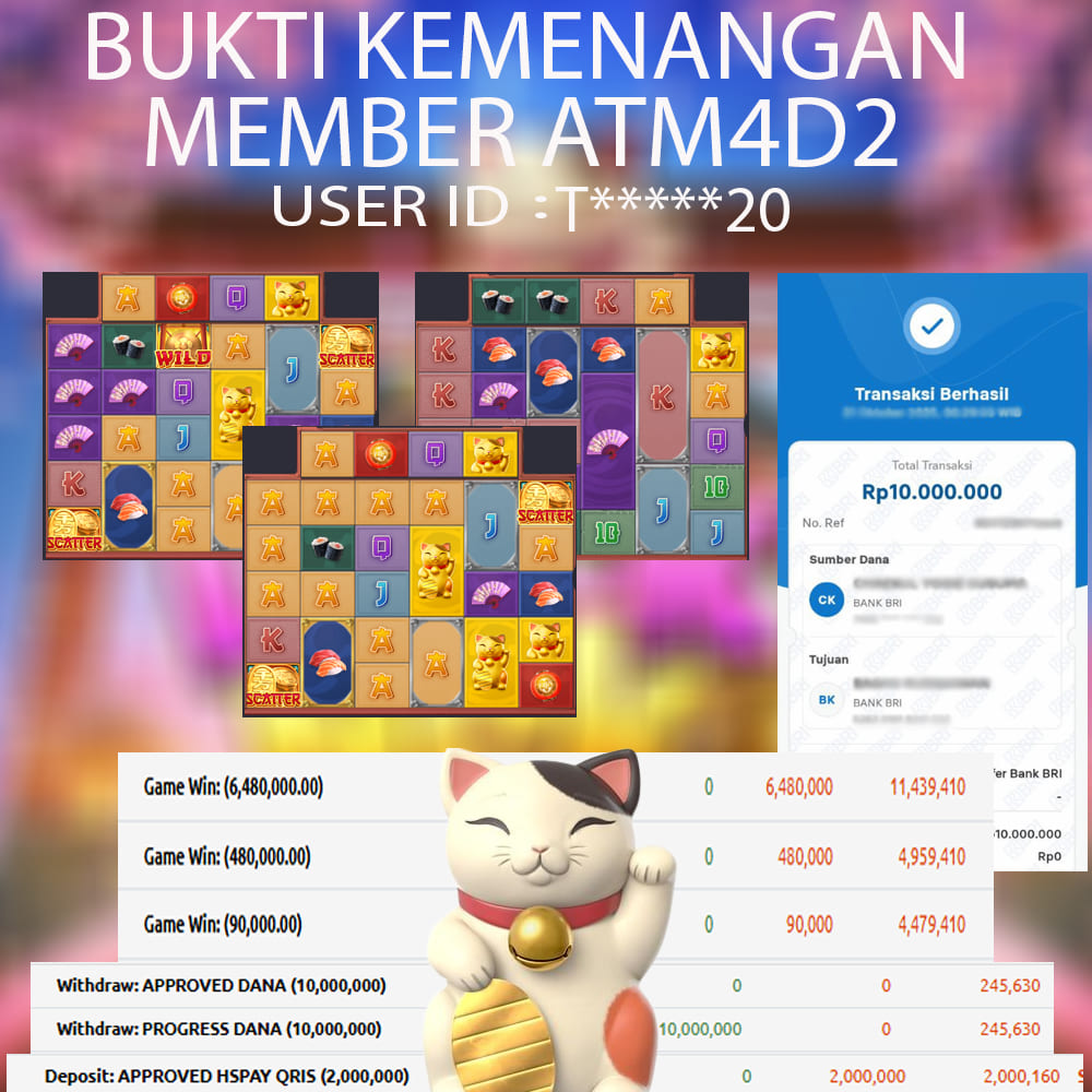 ATM4D2 dikenal sebagai situs terpercaya yang selalu menghadirkan pengalaman bermain slot online yang aman, fair, dan berlisensi resmi. Di sini, kami tidak hanya sekadar memberikan janji, tapi bukti nyata berupa slip kemenangan yang dapat Anda lihat secara langsung.