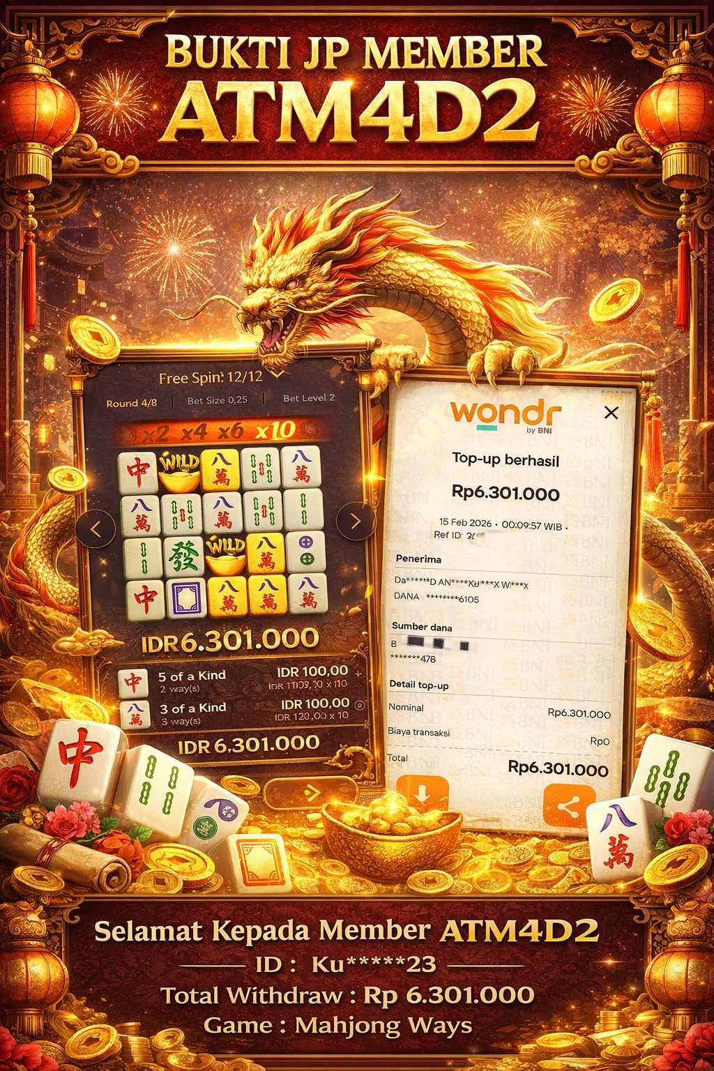 ATM4D2 dikenal sebagai situs terpercaya yang selalu menghadirkan pengalaman bermain slot online yang aman, fair, dan berlisensi resmi. Di sini, kami tidak hanya sekadar memberikan janji, tapi bukti nyata berupa slip kemenangan yang dapat Anda lihat secara langsung.