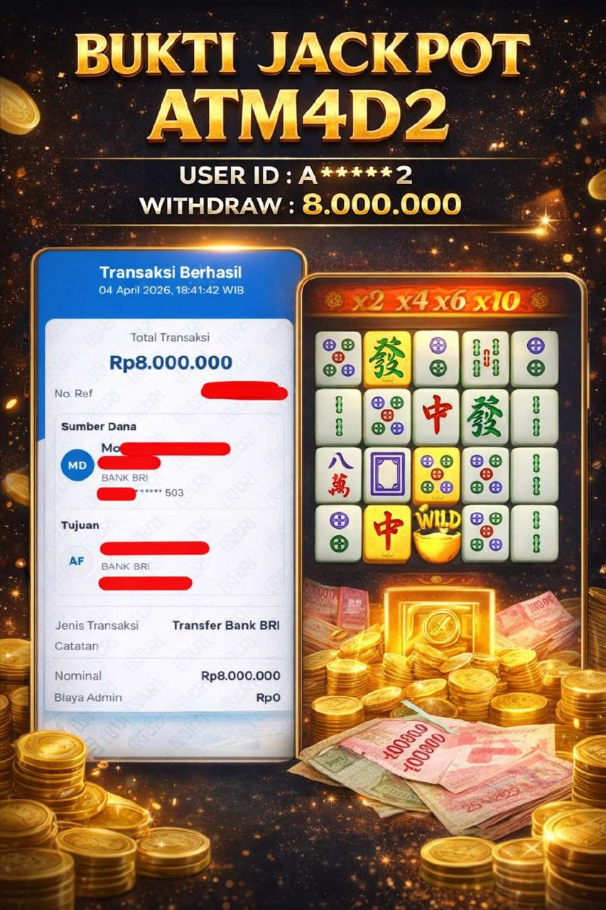 ATM4D2 dikenal sebagai situs terpercaya yang selalu menghadirkan pengalaman bermain slot online yang aman, fair, dan berlisensi resmi. Di sini, kami tidak hanya sekadar memberikan janji, tapi bukti nyata berupa slip kemenangan yang dapat Anda lihat secara langsung.