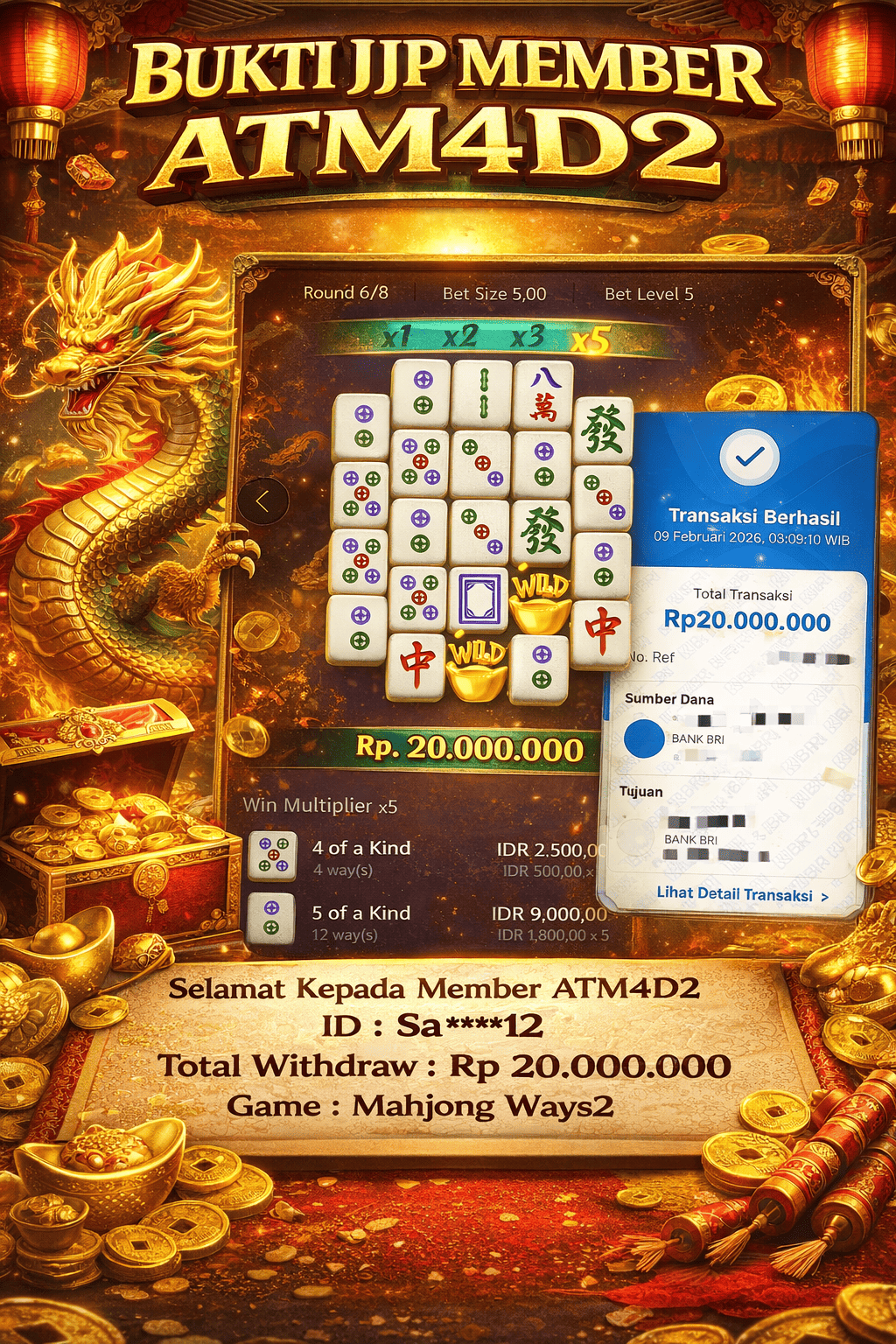 ATM4D2 dikenal sebagai situs terpercaya yang selalu menghadirkan pengalaman bermain slot online yang aman, fair, dan berlisensi resmi. Di sini, kami tidak hanya sekadar memberikan janji, tapi bukti nyata berupa slip kemenangan yang dapat Anda lihat secara langsung.
