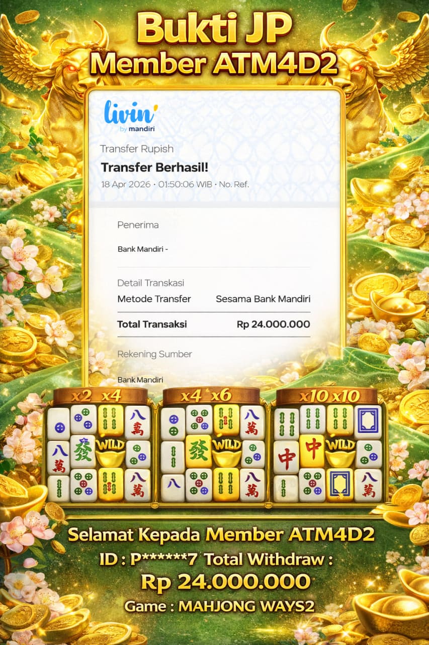 ATM4D2 dikenal sebagai situs terpercaya yang selalu menghadirkan pengalaman bermain slot online yang aman, fair, dan berlisensi resmi. Di sini, kami tidak hanya sekadar memberikan janji, tapi bukti nyata berupa slip kemenangan yang dapat Anda lihat secara langsung.