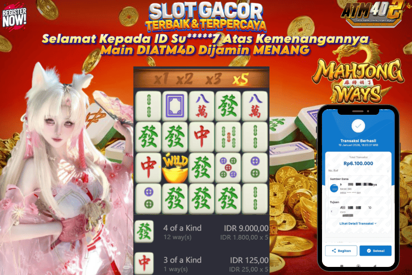 ATM4D2 dikenal sebagai situs terpercaya yang selalu menghadirkan pengalaman bermain slot online yang aman, fair, dan berlisensi resmi. Di sini, kami tidak hanya sekadar memberikan janji, tapi bukti nyata berupa slip kemenangan yang dapat Anda lihat secara langsung.