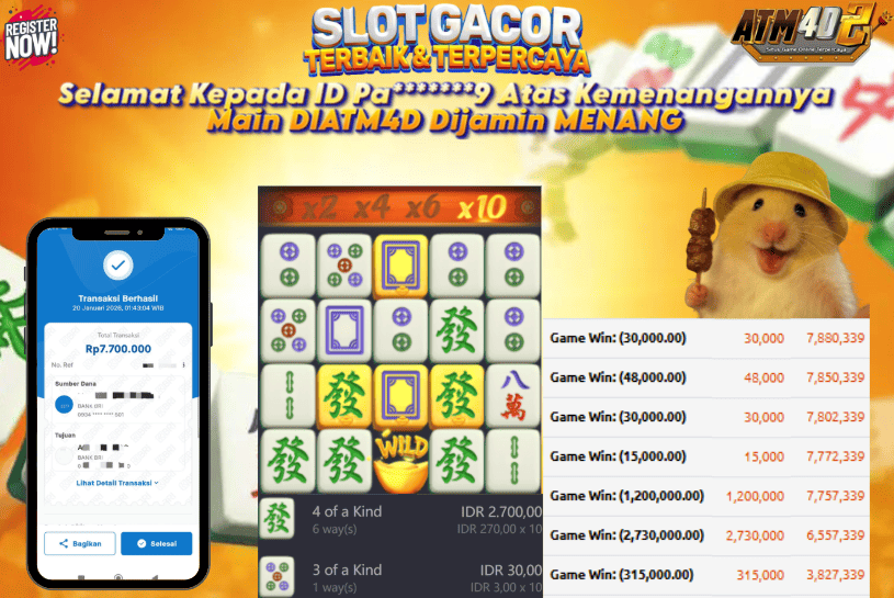 ATM4D2 dikenal sebagai situs terpercaya yang selalu menghadirkan pengalaman bermain slot online yang aman, fair, dan berlisensi resmi. Di sini, kami tidak hanya sekadar memberikan janji, tapi bukti nyata berupa slip kemenangan yang dapat Anda lihat secara langsung.