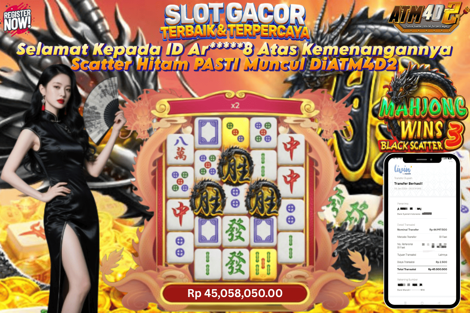 ATM4D2 dikenal sebagai situs terpercaya yang selalu menghadirkan pengalaman bermain slot online yang aman, fair, dan berlisensi resmi. Di sini, kami tidak hanya sekadar memberikan janji, tapi bukti nyata berupa slip kemenangan yang dapat Anda lihat secara langsung.