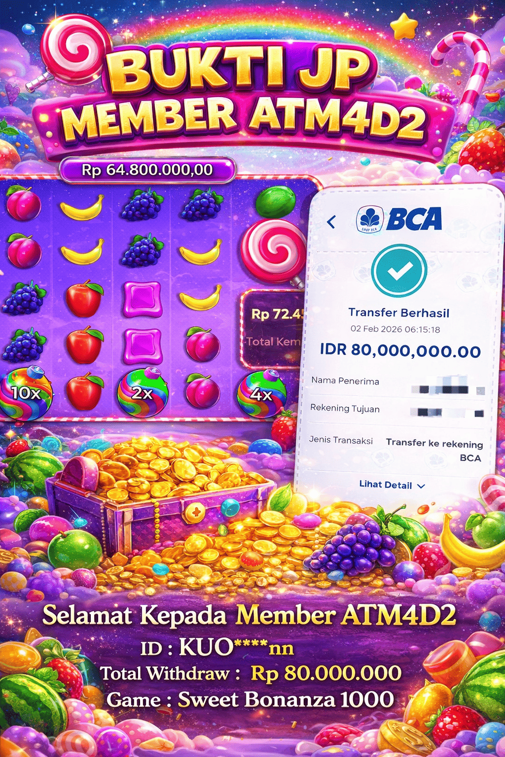 Bukti Kemenangan Slot JACKPOT SLOT SWEET BONANZA 1000 02 FEBRUARI 2026