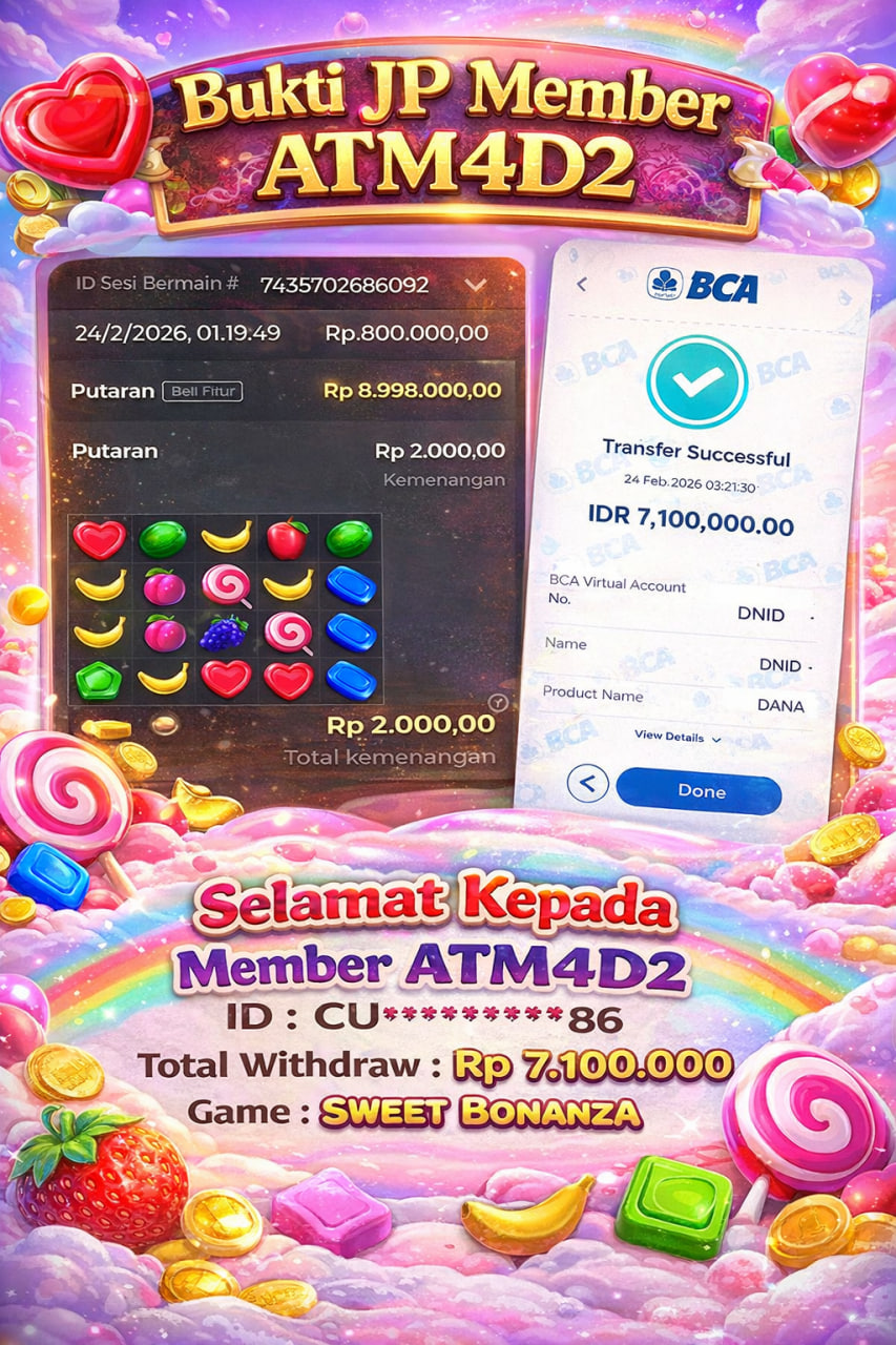 Setiap hari, member ATM4D2 berhasil meraih jackpot besar dari berbagai provider slot ternama yang kami sediakan, seperti Pragmatic Play, Habanero, PG Soft, dan masih banyak lagi. Kami secara rutin menampilkan bukti screenshot atau rekapan kemenangan yang berhasil diraih, mulai dari kemenangan ratusan ribu hingga puluhan juta rupiah. Semua slip kemenangan ini kami hadirkan untuk membuktikan bahwa di ATM4D2, peluang menang itu nyata.