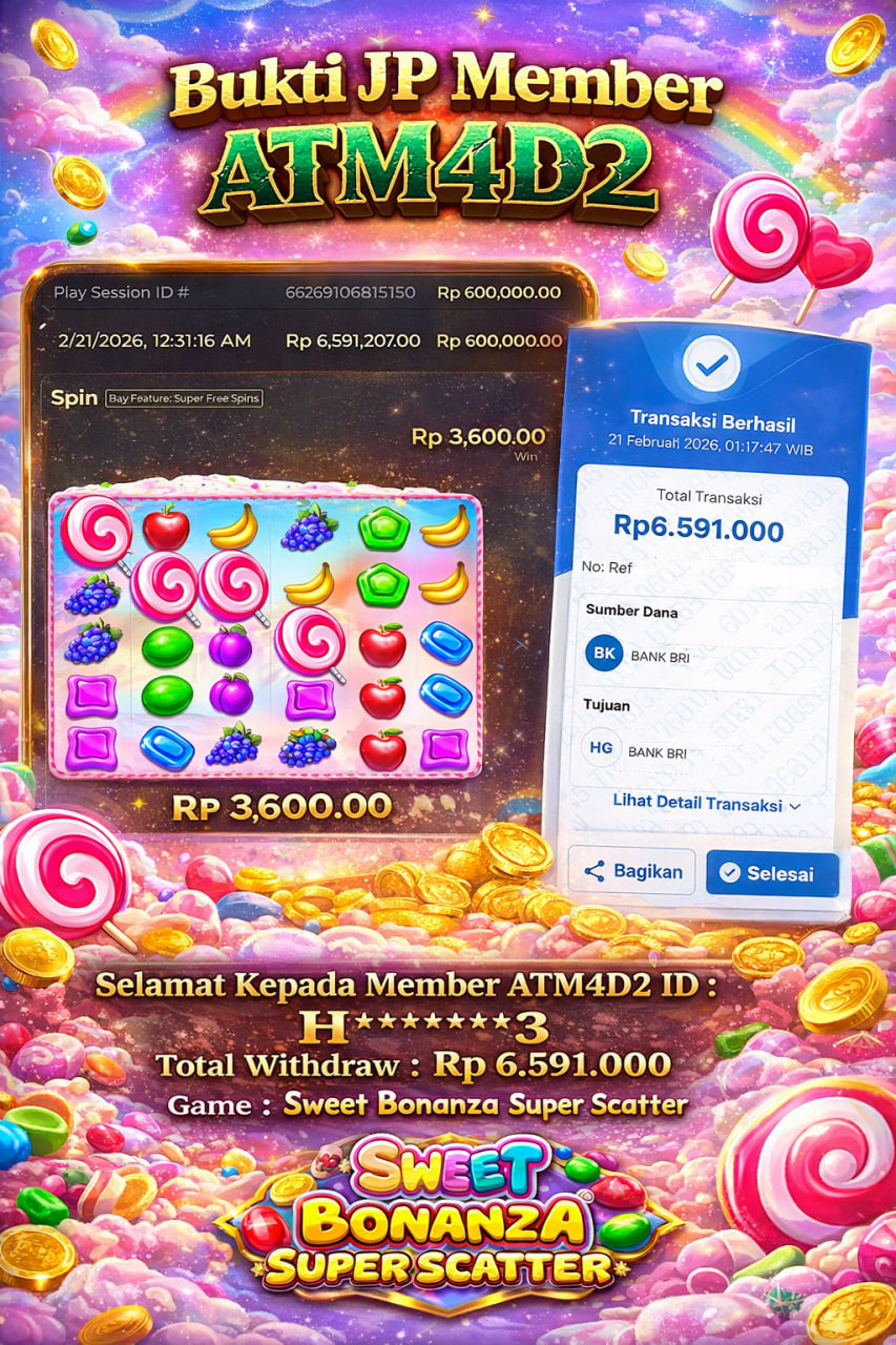 ATM4D2 dikenal sebagai situs terpercaya yang selalu menghadirkan pengalaman bermain slot online yang aman, fair, dan berlisensi resmi. Di sini, kami tidak hanya sekadar memberikan janji, tapi bukti nyata berupa slip kemenangan yang dapat Anda lihat secara langsung.