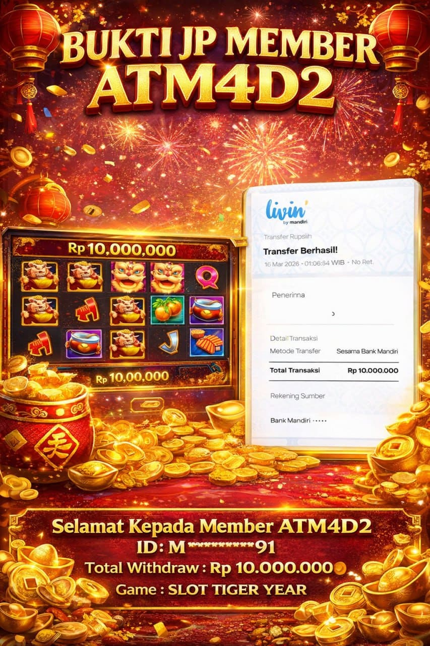 ATM4D2 dikenal sebagai situs terpercaya yang selalu menghadirkan pengalaman bermain slot online yang aman, fair, dan berlisensi resmi. Di sini, kami tidak hanya sekadar memberikan janji, tapi bukti nyata berupa slip kemenangan yang dapat Anda lihat secara langsung.