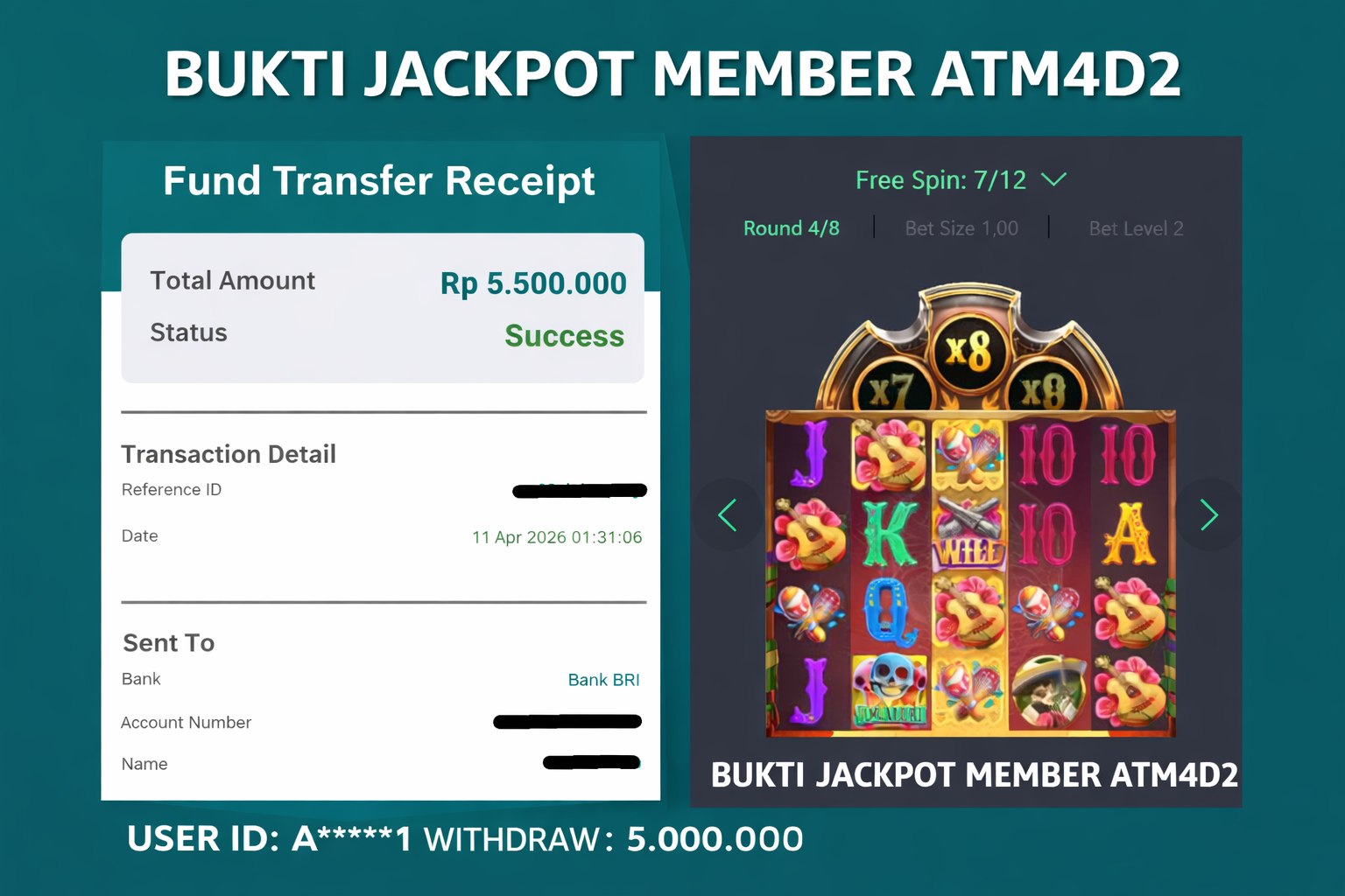 ATM4D2 dikenal sebagai situs terpercaya yang selalu menghadirkan pengalaman bermain slot online yang aman, fair, dan berlisensi resmi. Di sini, kami tidak hanya sekadar memberikan janji, tapi bukti nyata berupa slip kemenangan yang dapat Anda lihat secara langsung.