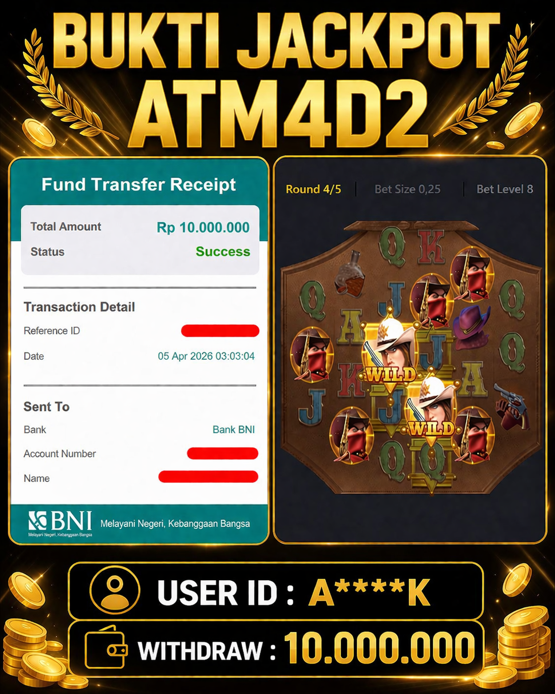 ATM4D2 dikenal sebagai situs terpercaya yang selalu menghadirkan pengalaman bermain slot online yang aman, fair, dan berlisensi resmi. Di sini, kami tidak hanya sekadar memberikan janji, tapi bukti nyata berupa slip kemenangan yang dapat Anda lihat secara langsung.