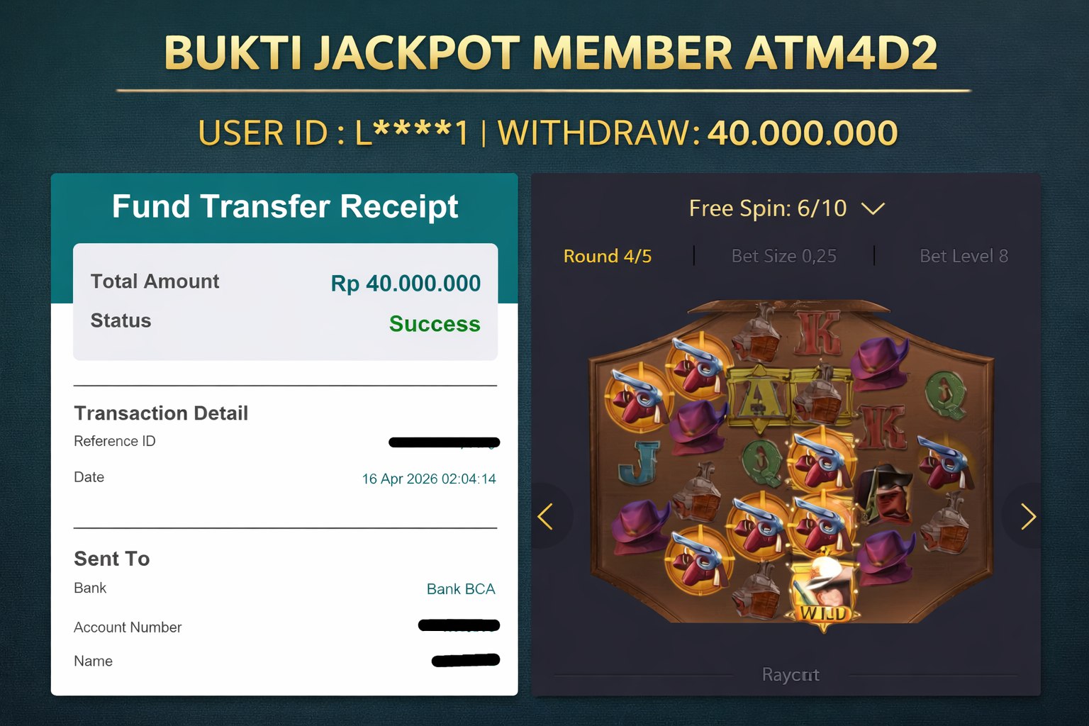 ATM4D2 dikenal sebagai situs terpercaya yang selalu menghadirkan pengalaman bermain slot online yang aman, fair, dan berlisensi resmi. Di sini, kami tidak hanya sekadar memberikan janji, tapi bukti nyata berupa slip kemenangan yang dapat Anda lihat secara langsung.