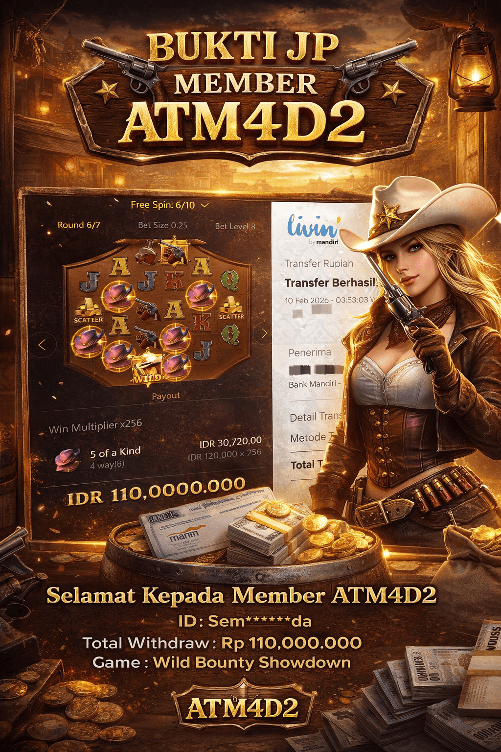 ATM4D2 dikenal sebagai situs terpercaya yang selalu menghadirkan pengalaman bermain slot online yang aman, fair, dan berlisensi resmi. Di sini, kami tidak hanya sekadar memberikan janji, tapi bukti nyata berupa slip kemenangan yang dapat Anda lihat secara langsung.