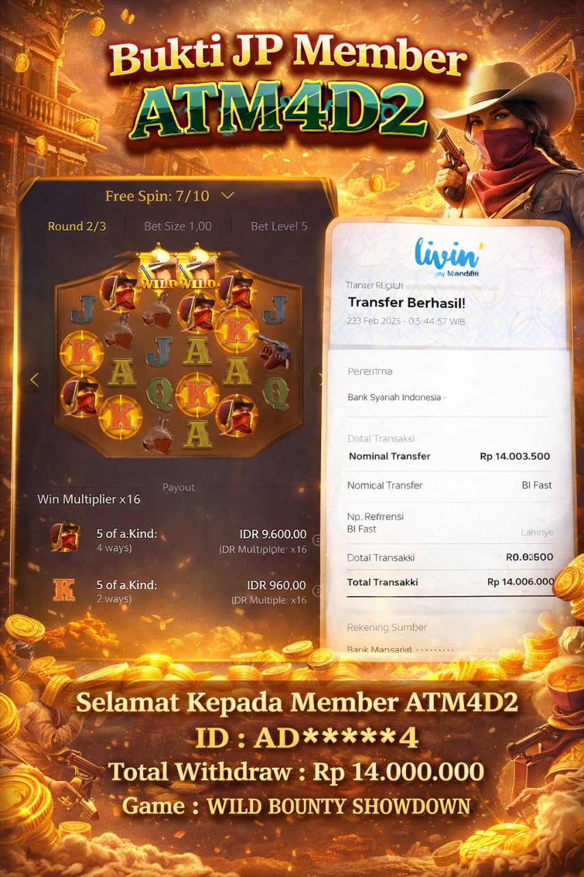 ATM4D2 dikenal sebagai situs terpercaya yang selalu menghadirkan pengalaman bermain slot online yang aman, fair, dan berlisensi resmi. Di sini, kami tidak hanya sekadar memberikan janji, tapi bukti nyata berupa slip kemenangan yang dapat Anda lihat secara langsung.