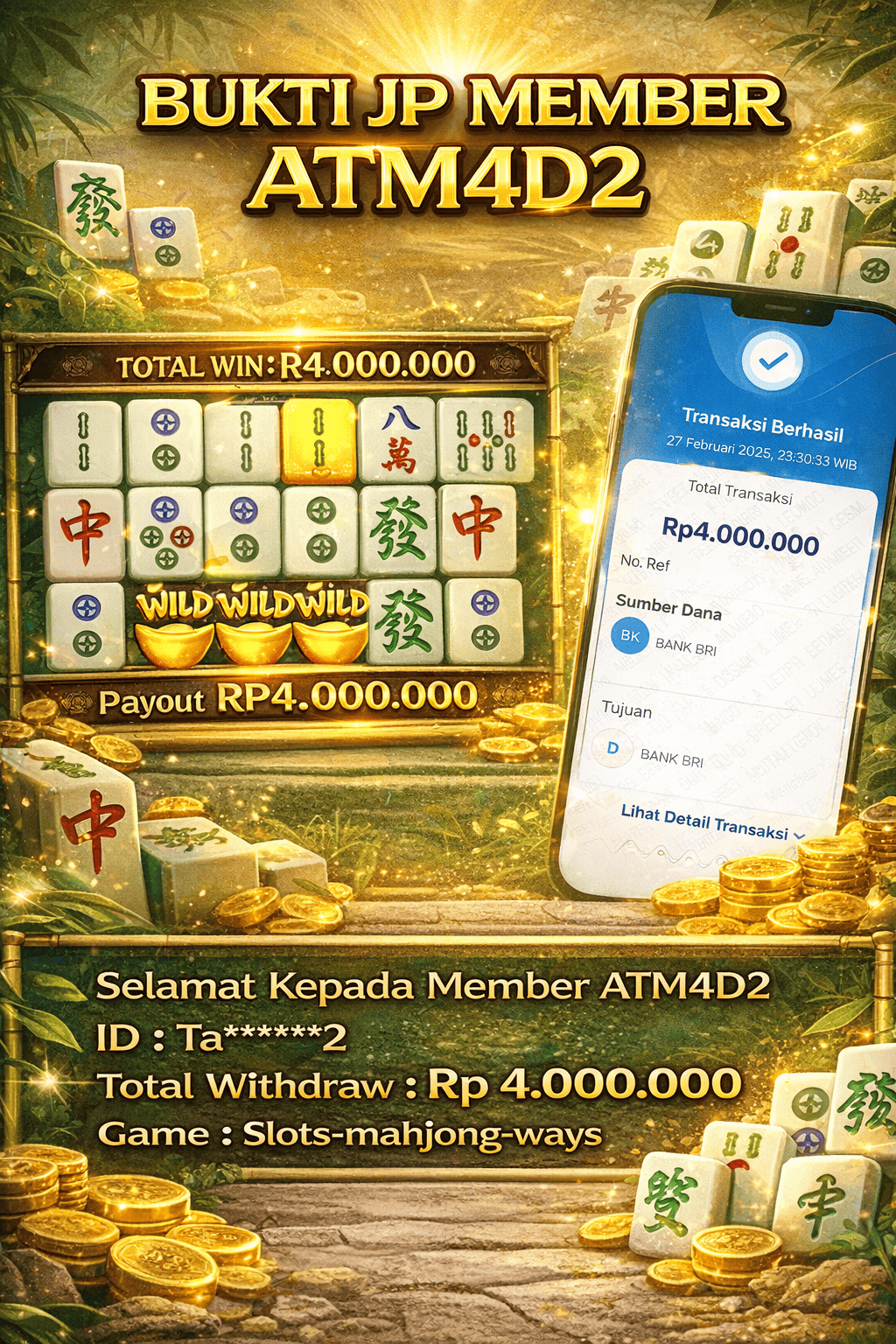 ATM4D2 dikenal sebagai situs terpercaya yang selalu menghadirkan pengalaman bermain slot online yang aman, fair, dan berlisensi resmi. Di sini, kami tidak hanya sekadar memberikan janji, tapi bukti nyata berupa slip kemenangan yang dapat Anda lihat secara langsung.