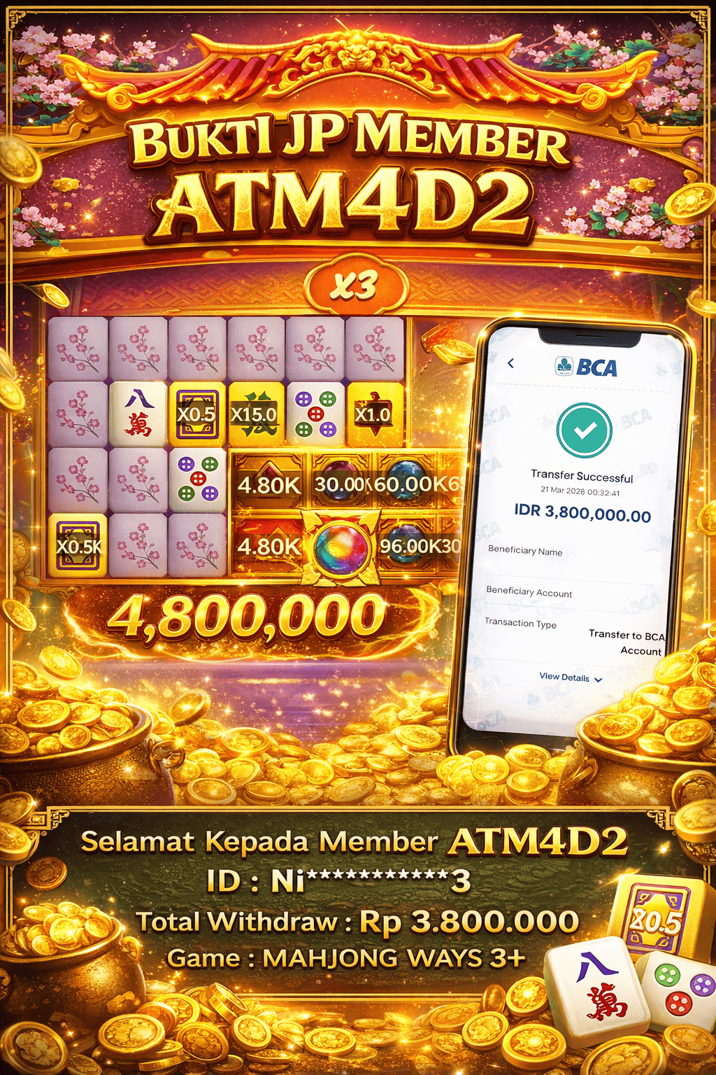 ATM4D2 dikenal sebagai situs terpercaya yang selalu menghadirkan pengalaman bermain slot online yang aman, fair, dan berlisensi resmi. Di sini, kami tidak hanya sekadar memberikan janji, tapi bukti nyata berupa slip kemenangan yang dapat Anda lihat secara langsung.