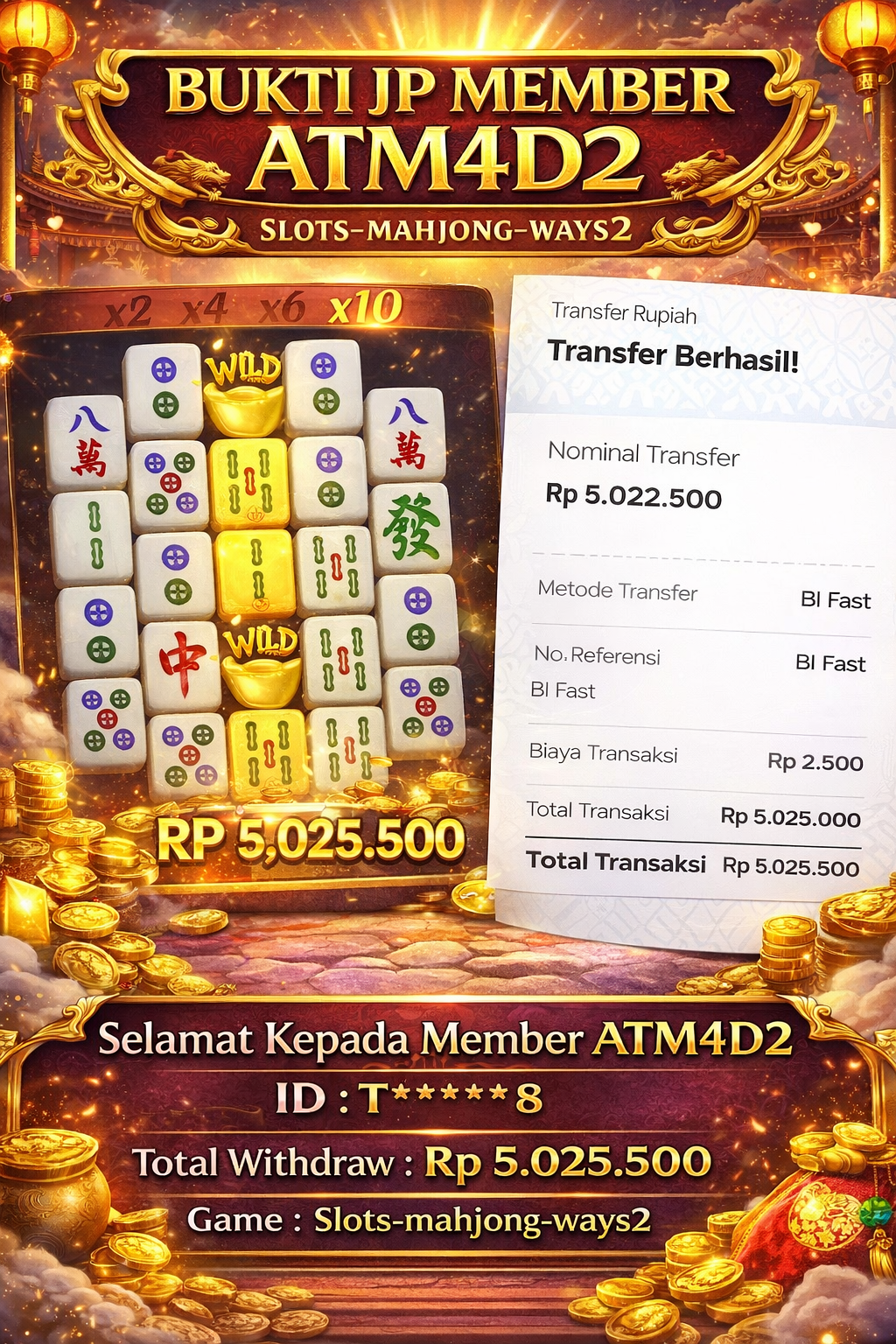 ATM4D2 dikenal sebagai situs terpercaya yang selalu menghadirkan pengalaman bermain slot online yang aman, fair, dan berlisensi resmi. Di sini, kami tidak hanya sekadar memberikan janji, tapi bukti nyata berupa slip kemenangan yang dapat Anda lihat secara langsung.